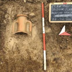 etrusca impressa su un’anfora vinaria recuperata all’interno di uno degli ambienti indagati.